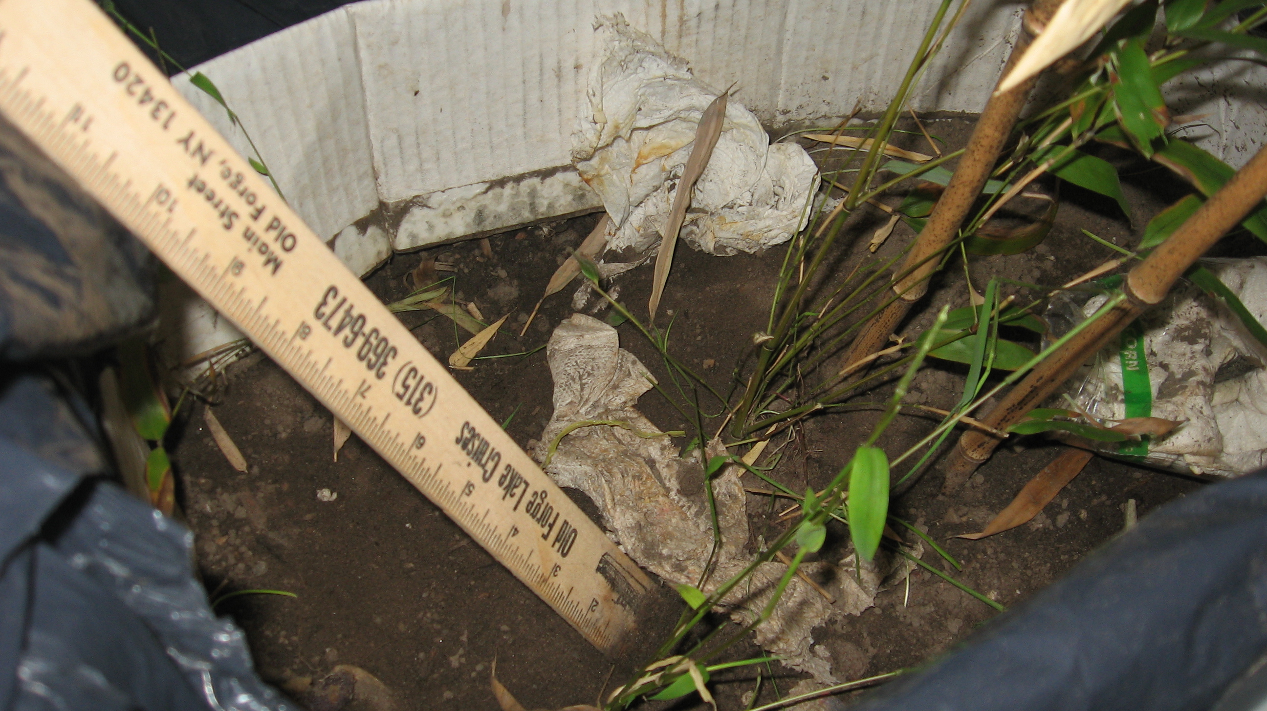 Rachel tried growing bamboo again 8 years later and was marginally more successful. Her bamboo plants reached over 6 feet tall and a few mm in diameter. They survived one winter in a makeshift modular greenhouse which was later abandoned due to damage from wind storms. The following winter they died in pots on the porch.
